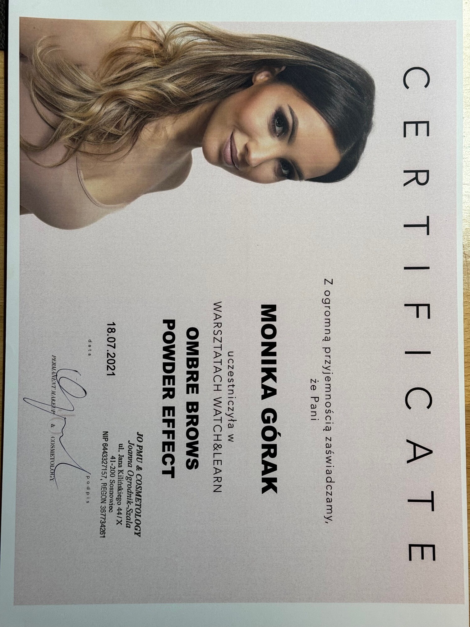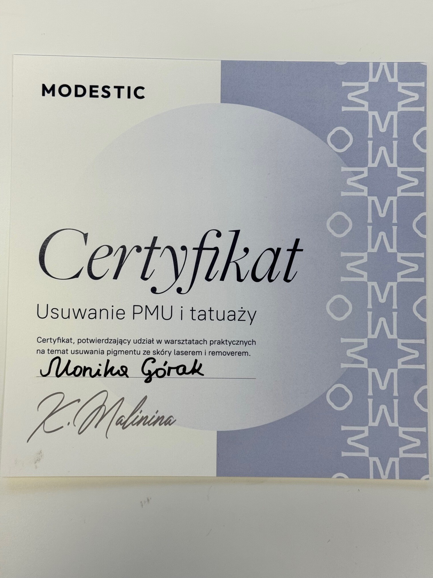Nazywam się Monika Górak, jestem kosmetologiem, linergistką i ekspertem w dziedzinie laserowego usuwania makijażu permanentnego.